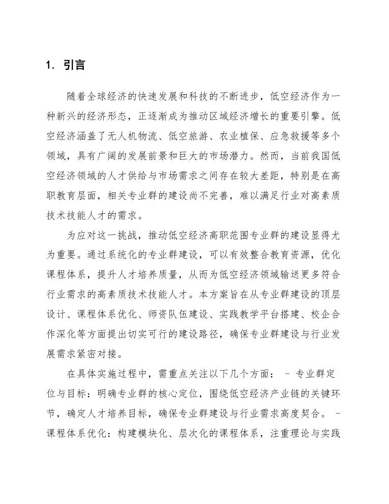 为应对这一挑战,推动低空经济高职范围专业群的建设显得尤为重要。通过系统化的专业群建设,可以有效整合教育资源,优化课程体系,提升人才培养质量,从而为低空经济领域输送更多符合行业需求的高素质技术技能人才。本方案旨在从专业群建设的顶层设计、课程体系优化、师资队伍建设、实践教学平台搭建、校企合作深化等方面提出切实可行的建设路径,确保专业群建设与行业发展需求紧密对接。