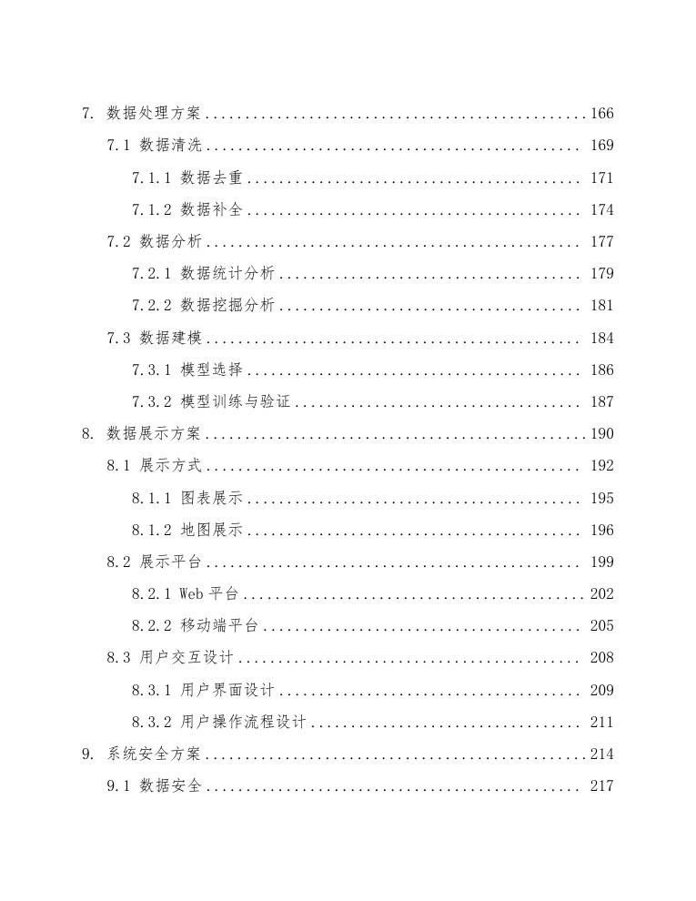 数据处理模块还需要具备数据安全和隐私保护功能。所有数据在传输和存储过程中均需进行加密处理,确保数据不被非法访问或篡改。同时,模块需要支持数据访问权限控制,确保不同用户只能访问其权限范围内的数据。