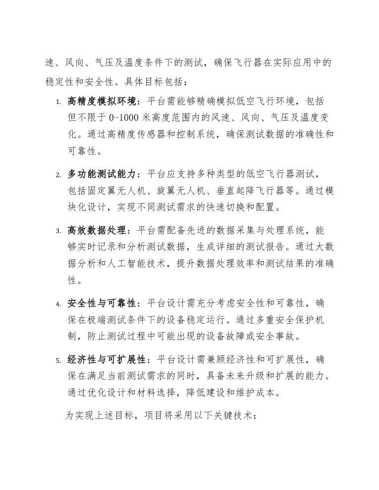 通过以上技术手段,本项目将构建一个高效、精确、安全、经济的低空飞行器风洞试验平台,为低空飞行器的研发和测试提供强有力的支持。