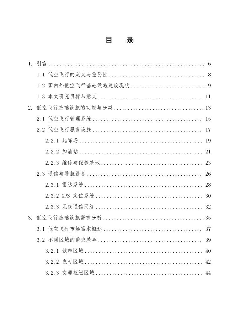 本文的研究目标在于制定一套切实可行的低空飞行基础设施建设规划方案,旨在优化低空空域资源配置,提高空域利用效率,增强低空飞行管理的科学性与合理性。具体目标包括: