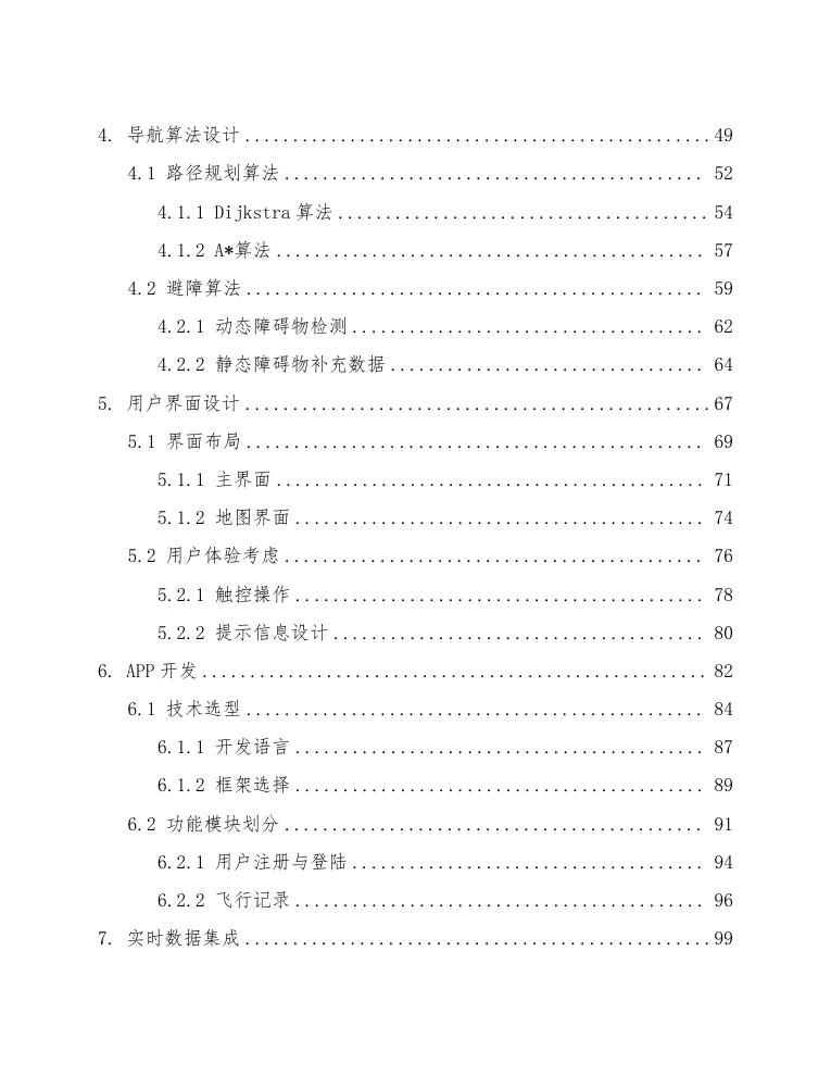用户友好的APP界面:为了确保用户可以便捷地获取和使用导航信息,APP将设计成简洁直观的操作界面,方便用户进行航线规划、查看实时数据和获取飞行指导。