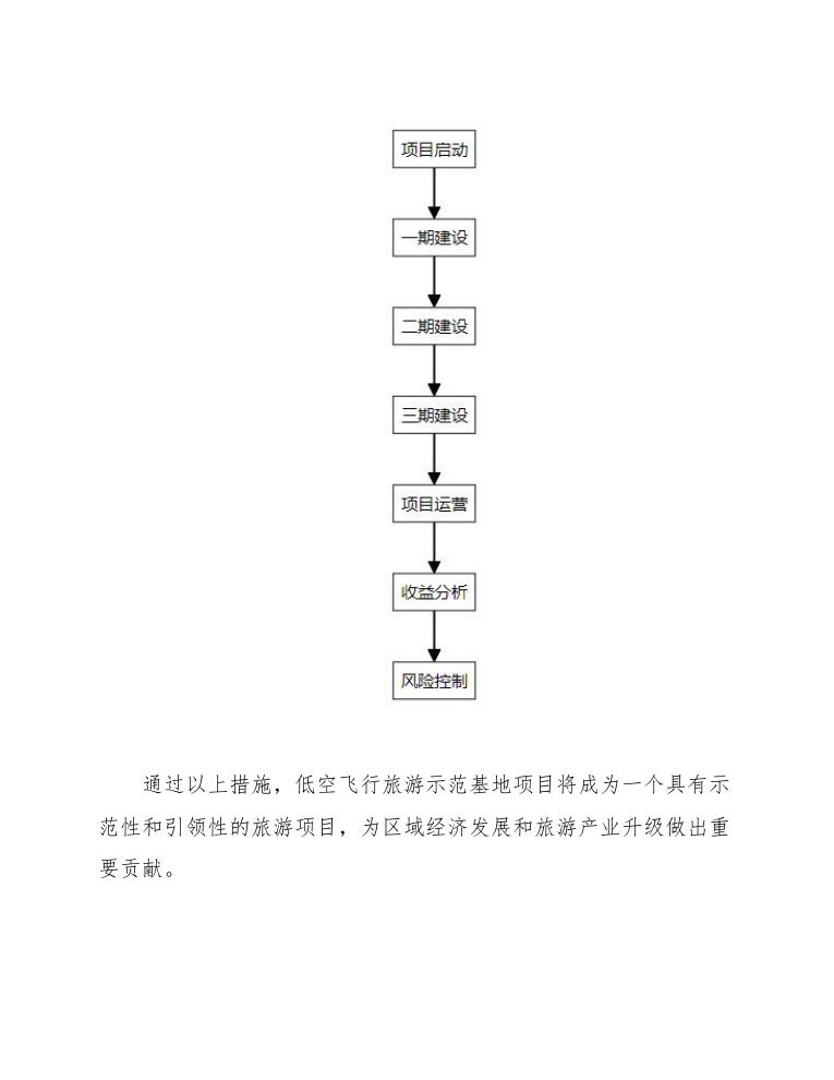 通过以上措施,低空飞行旅游示范基地项目将成为一个具有示范性和引领性的旅游项目,为区域经济发展和旅游产业升级做出重要贡献。