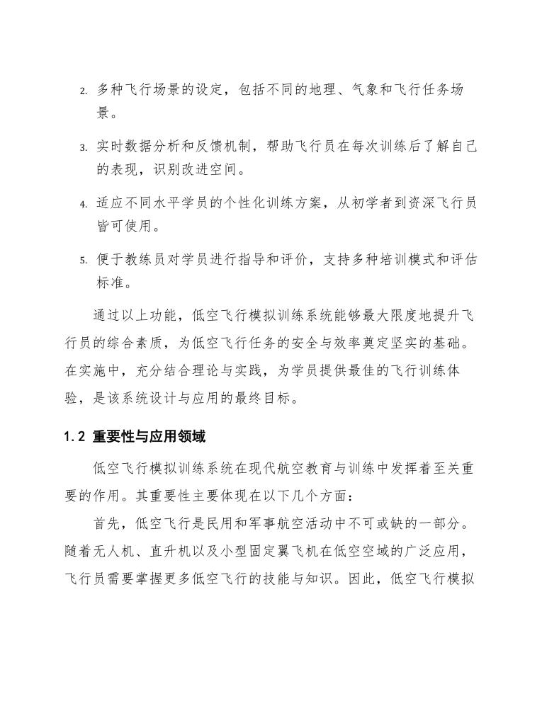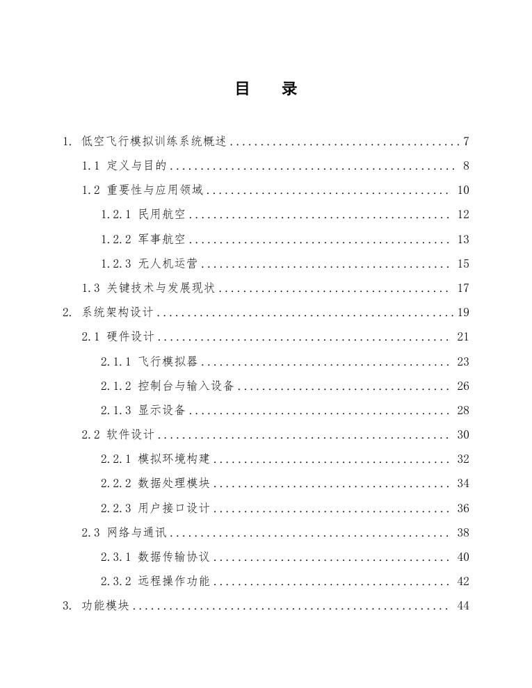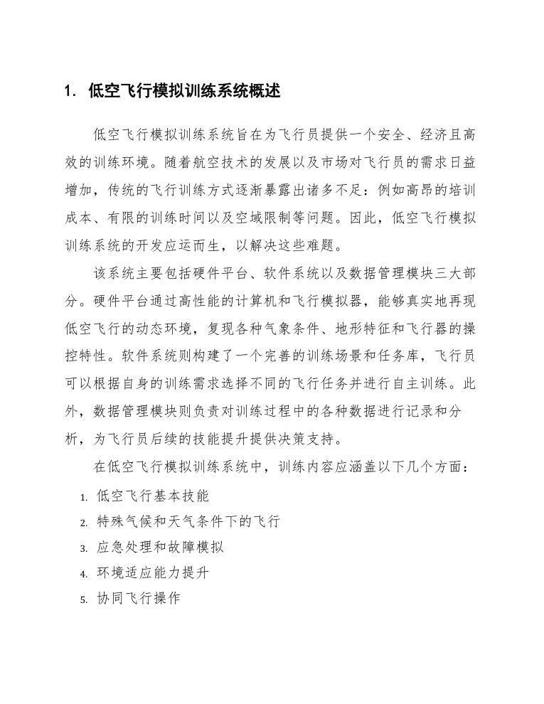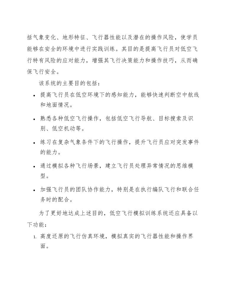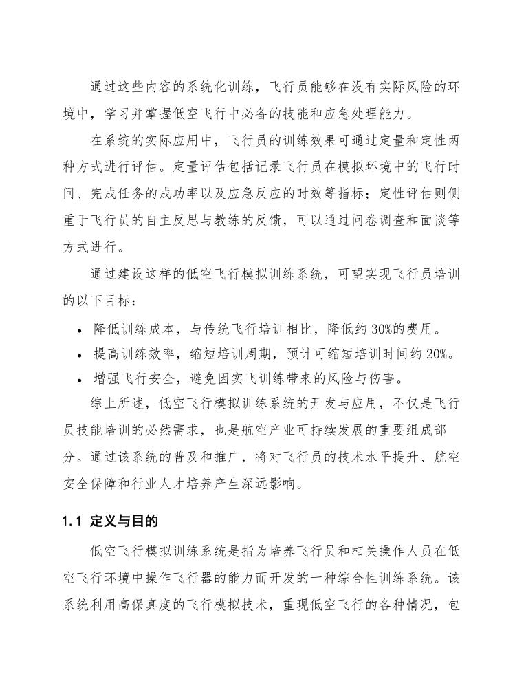 综上所述,低空飞行模拟训练系统的开发与应用,不仅是飞行员技能培训的必然需求,也是航空产业可持续发展的重要组成部分。通过该系统的普及和推广,将对飞行员的技术水平提升、航空安全保障和行业人才培养产生深远影响。