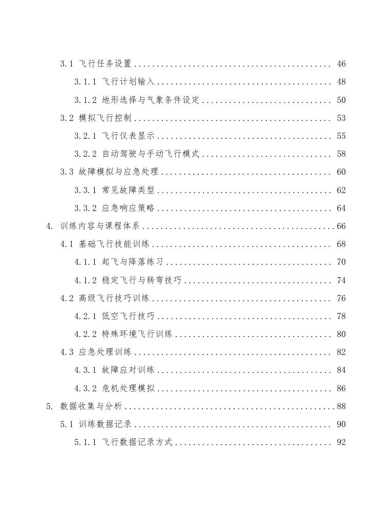 通过以上训练内容的系统安排,学员将能够培养出扎实的基础飞行技能,为后续的更复杂的飞行训练打下良好的基础。同时,针对每个训练环节的反馈与评估,能够有效提高学员的学习效率,确保飞行安全。