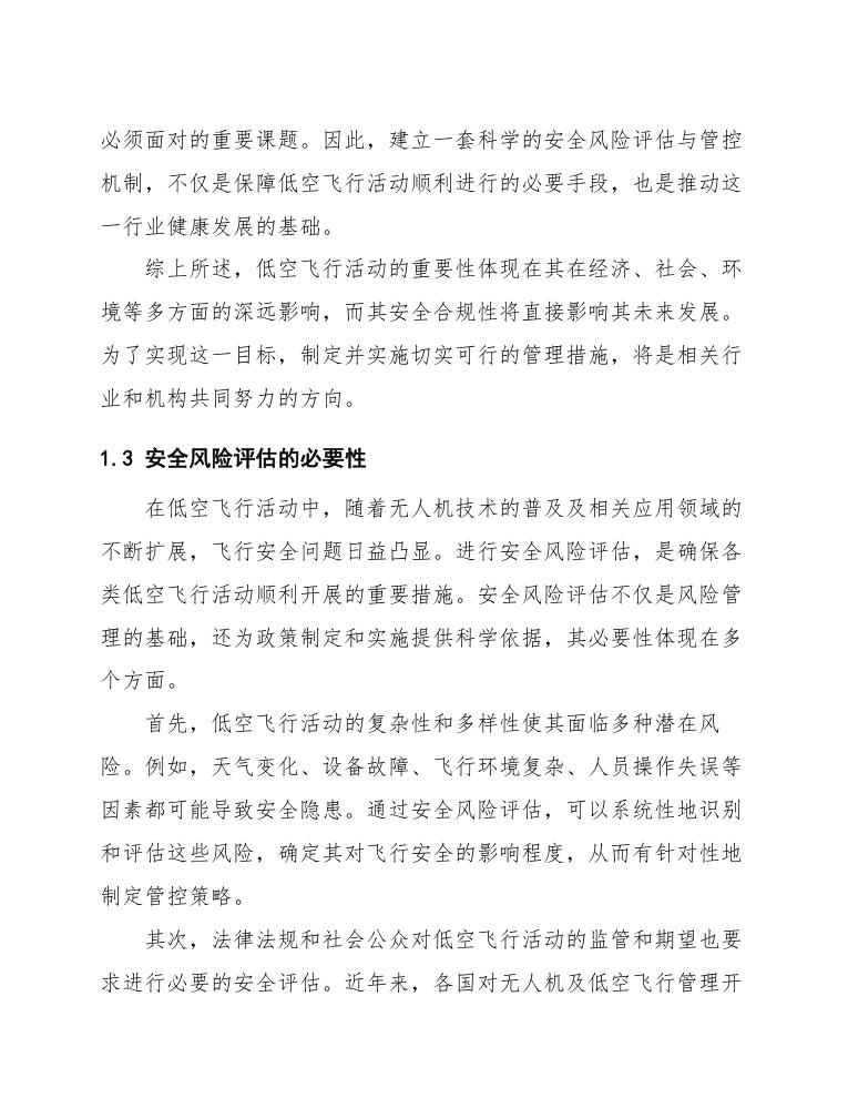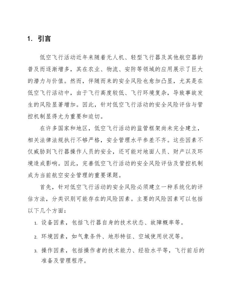低空飞行活动近年来随着无人机、轻型飞行器及其他航空器的普及而逐渐增多,其在农业、物流、安防等领域的应用展示了巨大的潜力与价值。然而,伴随而来的安全风险也愈加凸显,尤其是在低空飞行活动中,由于飞行高度较低、飞行环境复杂,导致事故发生的风险显著增加。因此,针对低空飞行活动的安全风险评估与管控机制显得尤为重要和迫切。