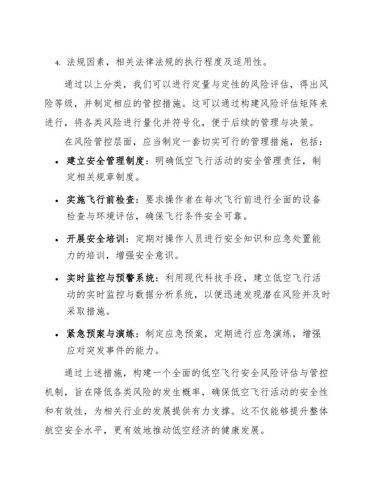 通过上述措施,构建一个全面的低空飞行安全风险评估与管控机制,旨在降低各类风险的发生概率,确保低空飞行活动的安全性和有效性,为相关行业的发展提供有力支撑。这不仅能够提升整体航空安全水平,更有效地推动低空经济的健康发展。