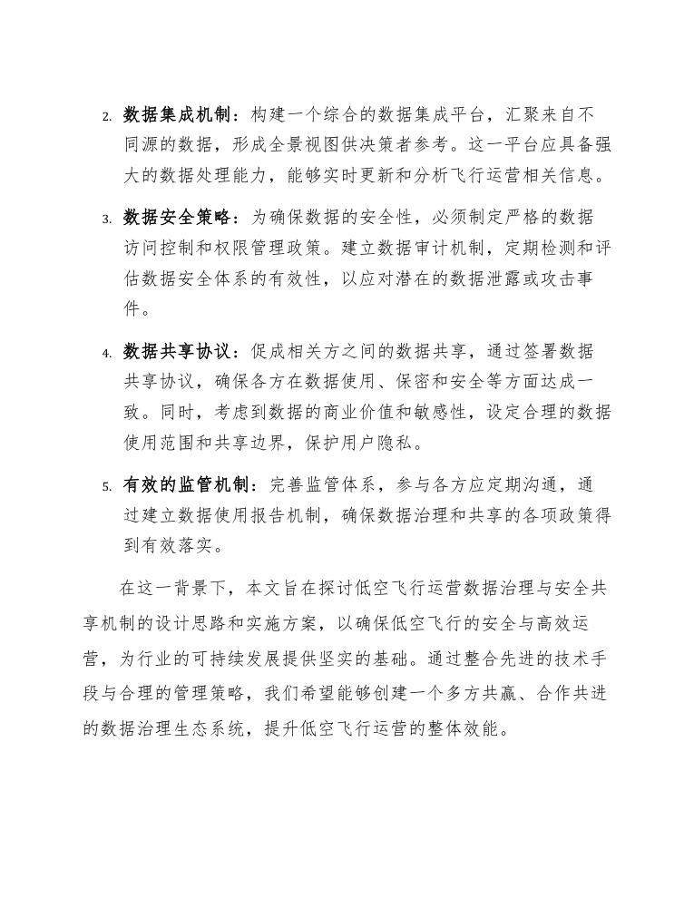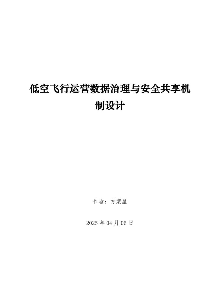在这一背景下,本文旨在探讨低空飞行运营数据治理与安全共享机制的设计思路和实施方案,以确保低空飞行的安全与高效运营,为行业的可持续发展提供坚实的基础。通过整合先进的技术手段与合理的管理策略,我们希望能够创建一个多方共赢、合作共进的数据治理生态系统,提升低空飞行运营的整体效能。