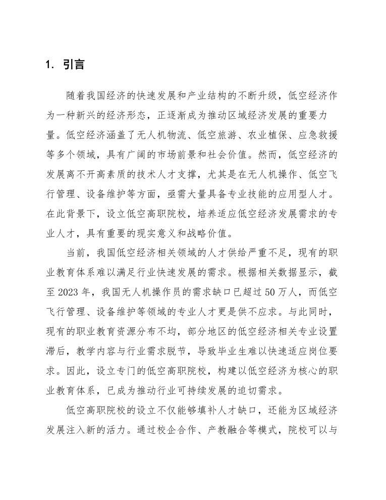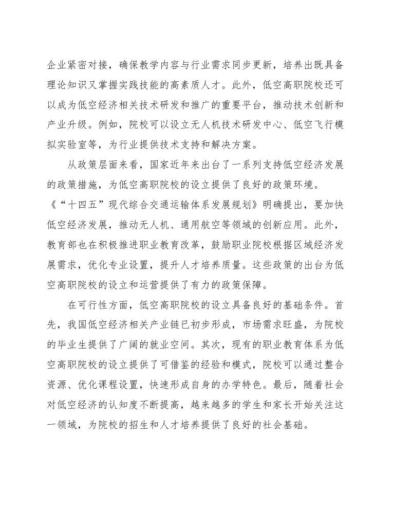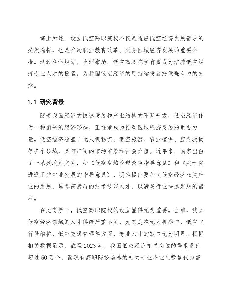 通过以上研究,旨在为低空高职院校的设立提供科学依据与实施方案,推动低空经济领域的人才培养与产业发展,实现教育与经济的双赢。