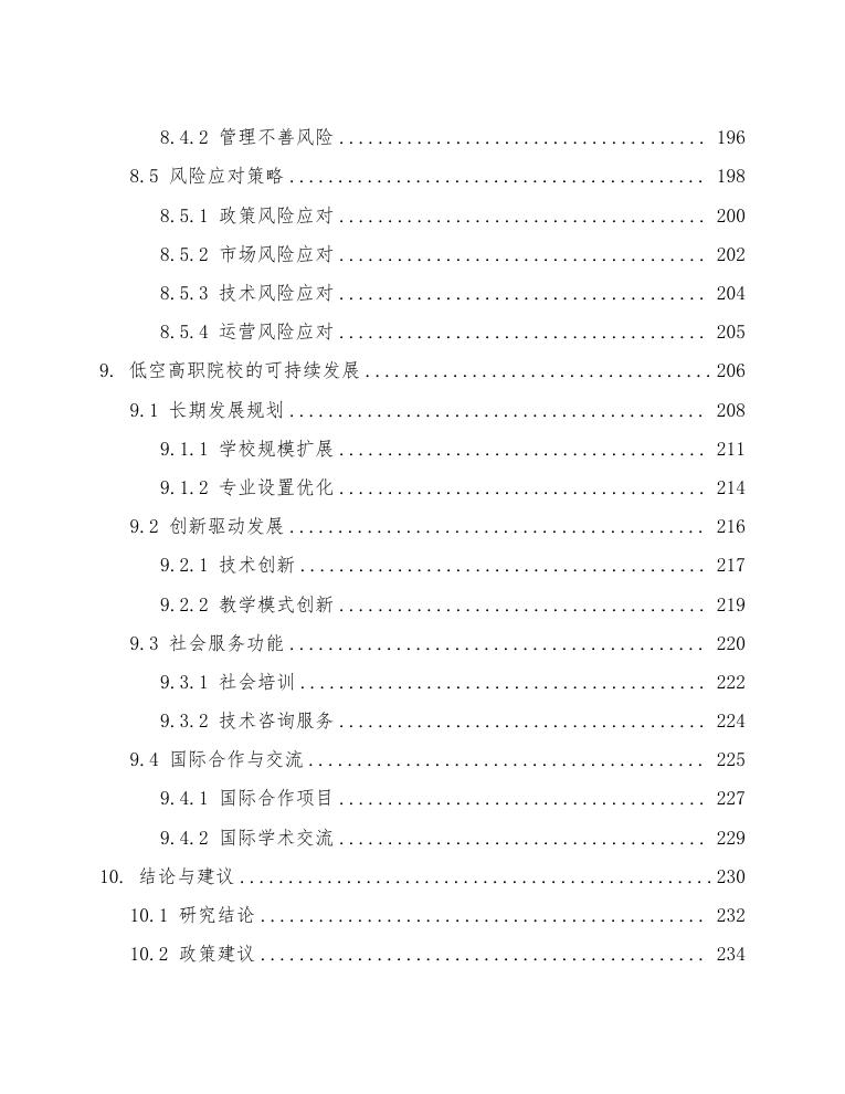 最后,研究将提出低空高职院校的评估指标体系,为后续的办学质量监控与改进提供依据。通过建立科学的评估体系,确保低空高职院校的办学质量与市场需求相匹配,实现教育与产业的深度融合。