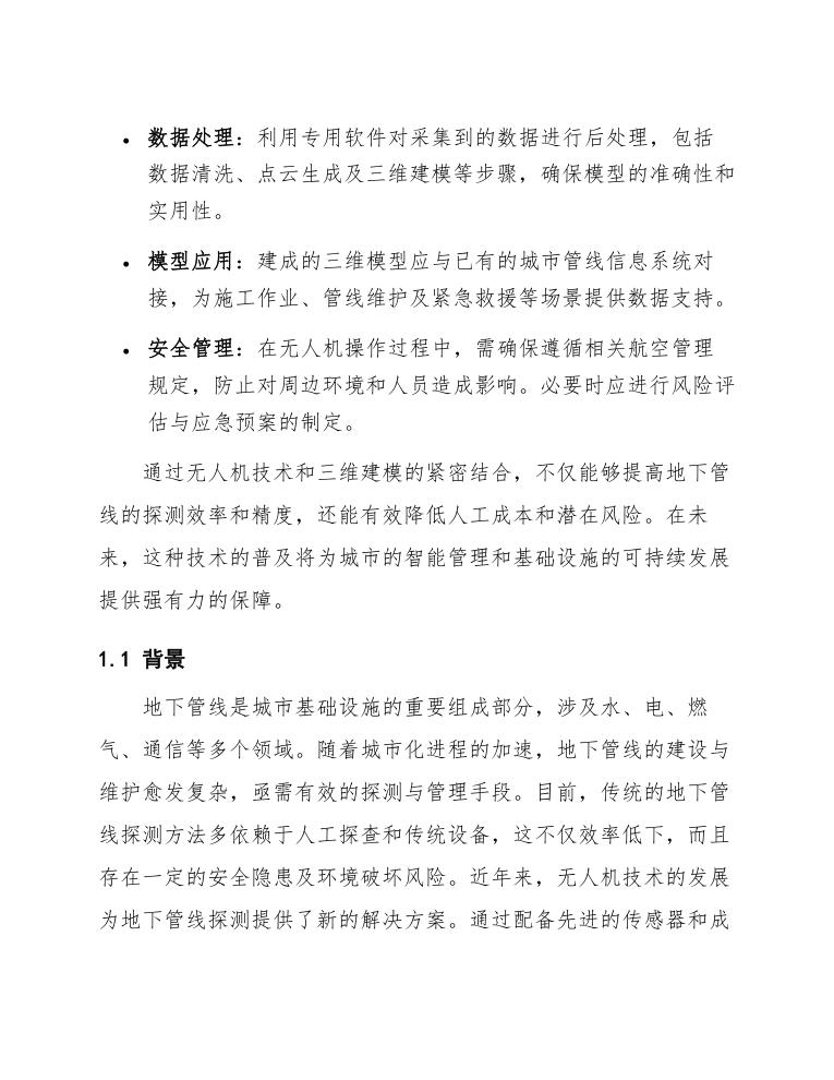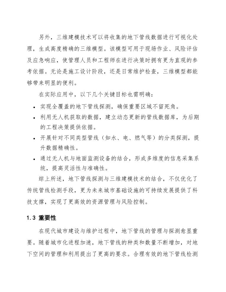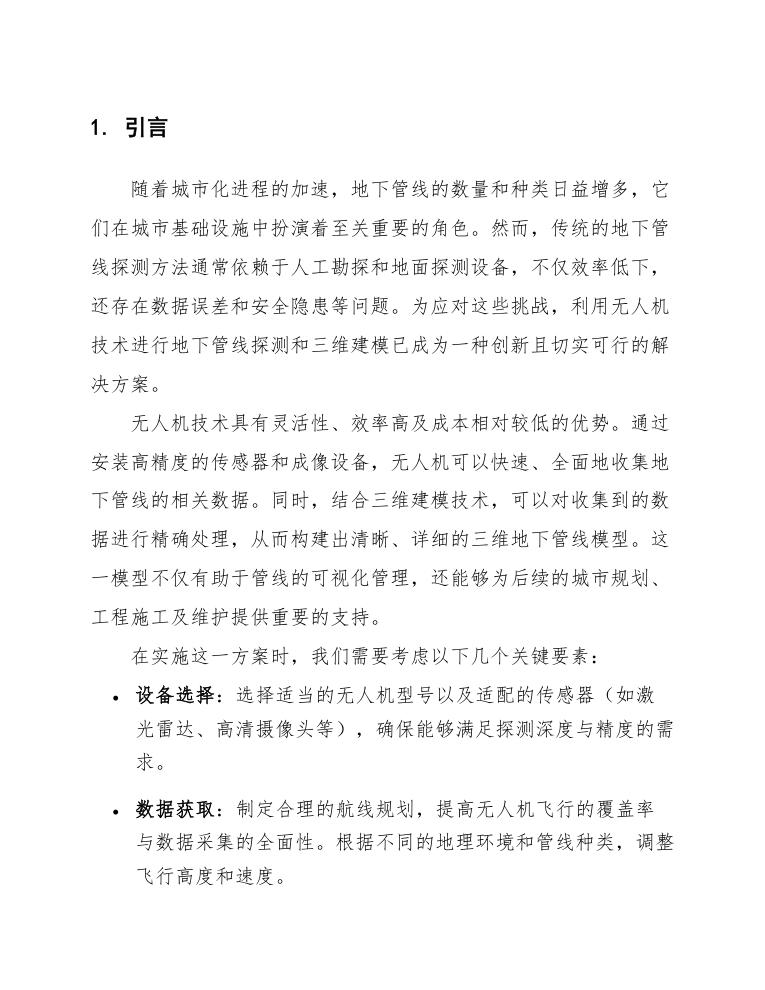 通过这些步骤,不仅能够实现对地下管线的精确管理,还能够提升管线的可视化水平,为相关部门的决策提供科学依据。此外,本方案强调了无人机技术在实时性和高效性上的优势,以及其在实际应用中的可行性与必要性。