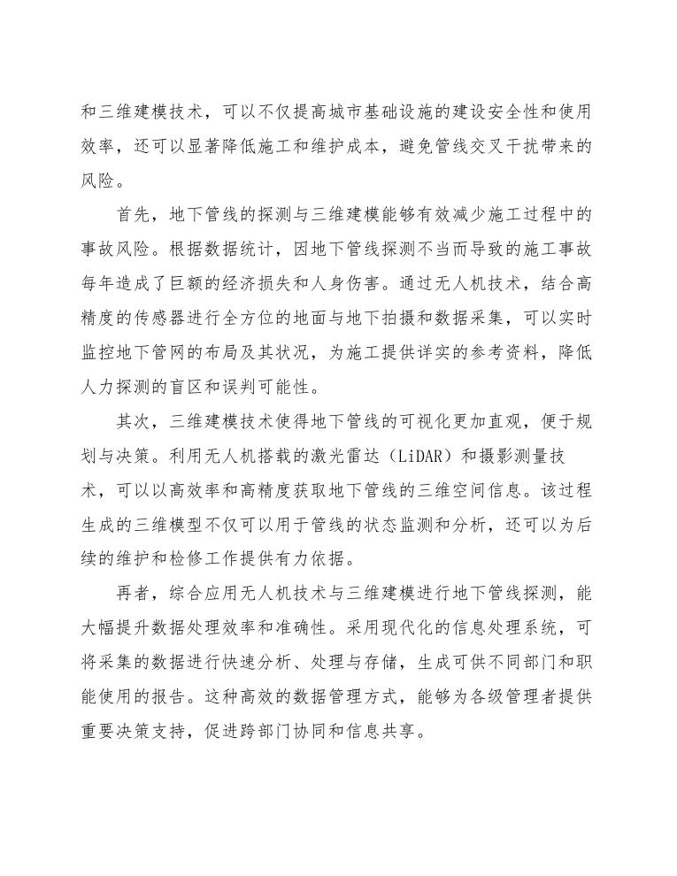 通过无人机技术和三维建模的紧密结合,不仅能够提高地下管线的探测效率和精度,还能有效降低人工成本和潜在风险。在未来,这种技术的普及将为城市的智能管理和基础设施的可持续发展提供强有力的保障。