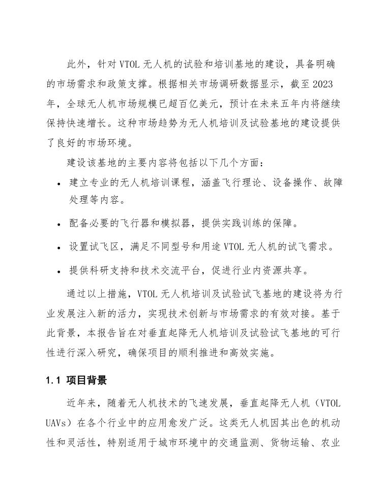通过以上措施,VTOL无人机培训及试验试飞基地的建设将为行业发展注入新的活力,实现技术创新与市场需求的有效对接。基于此背景,本报告旨在对垂直起降无人机培训及试验试飞基地的可行性进行深入研究,确保项目的顺利推进和高效实施。