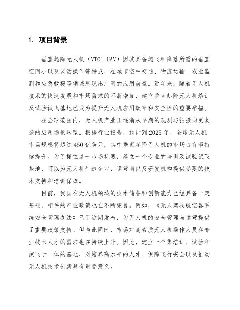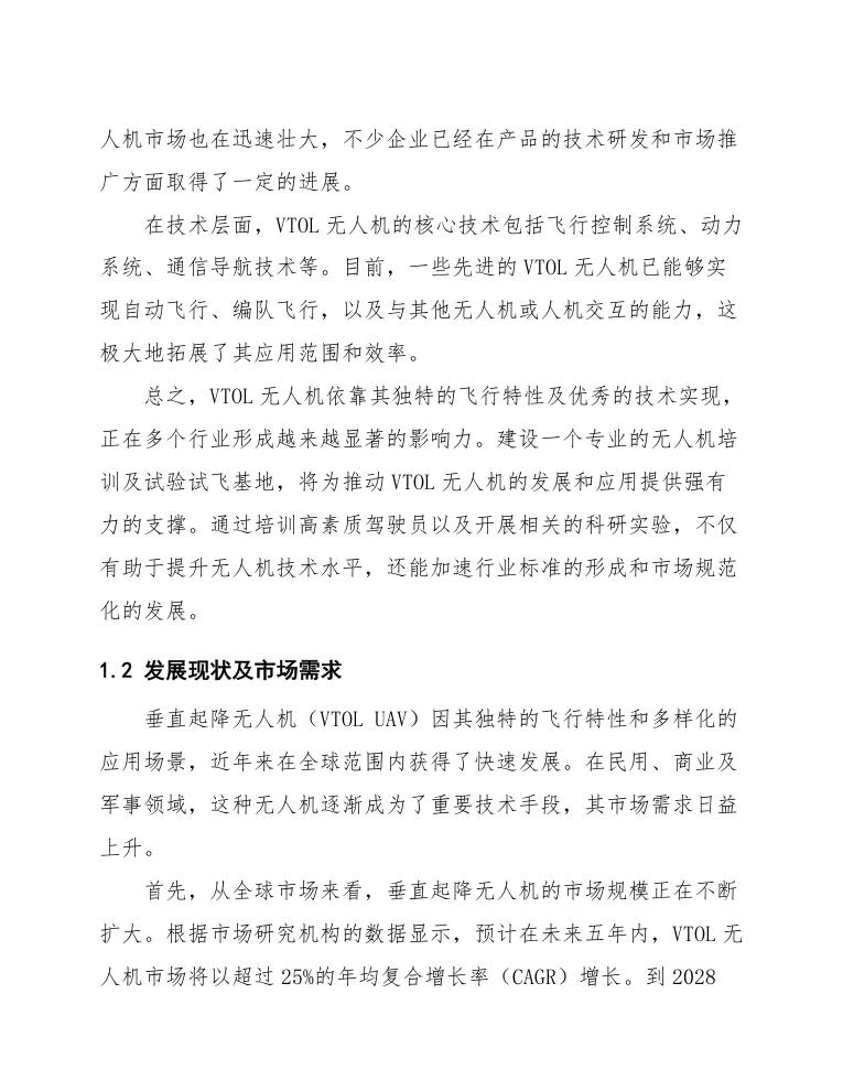 通过以上措施,垂直起降无人机培训及试验试飞基地将为行业提供强有力的支持,加速无人机技术的普及与应用,推动相关产业的可持续发展。
