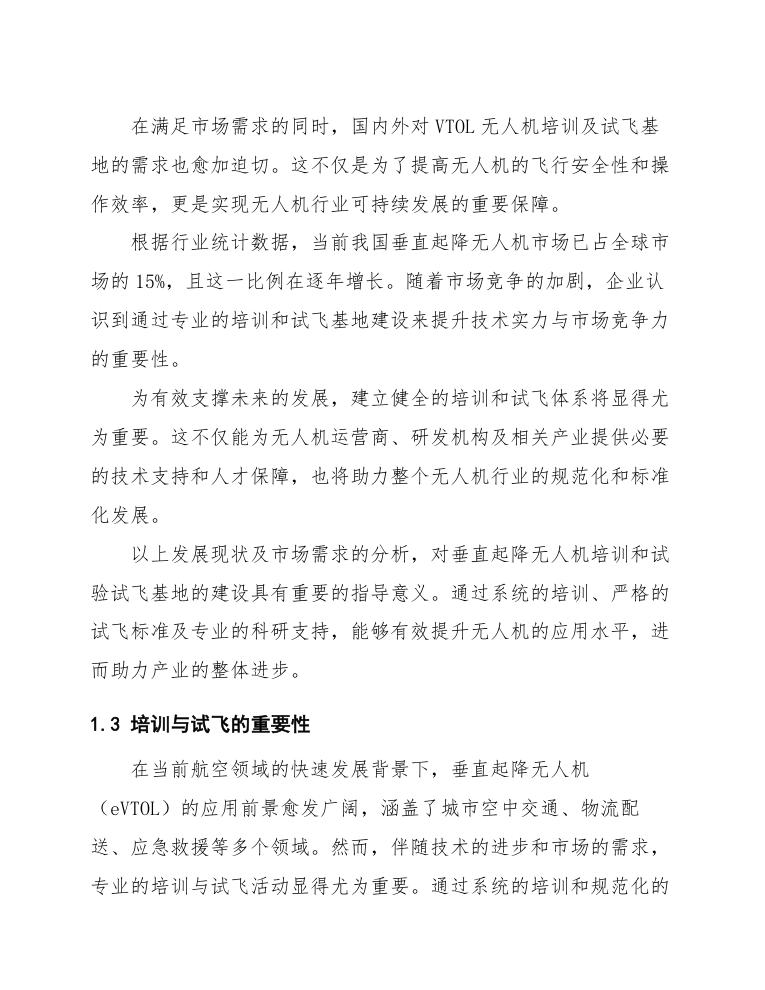 以上发展现状及市场需求的分析,对垂直起降无人机培训和试验试飞基地的建设具有重要的指导意义。通过系统的培训、严格的试飞标准及专业的科研支持,能够有效提升无人机的应用水平,进而助力产业的整体进步。