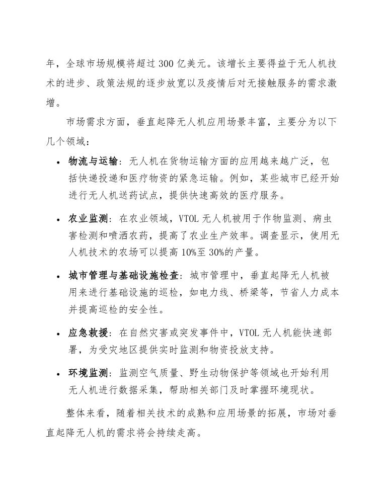 整体来看,随着相关技术的成熟和应用场景的拓展,市场对垂直起降无人机的需求将会持续走高。