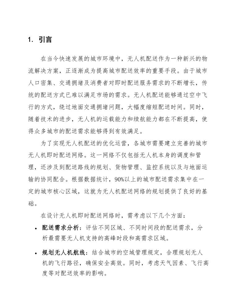 综合来看,本文的主要目的在于为城市无人机即时配送提供一套切实可行的运营方案,以应对日益严峻的配送挑战,并推动城市物流的数字化转型和可持续发展。通过上述结构化的分析与设计,期望能够为政策制定者、企业决策者及学术研究者提供有价值的参考与启示。