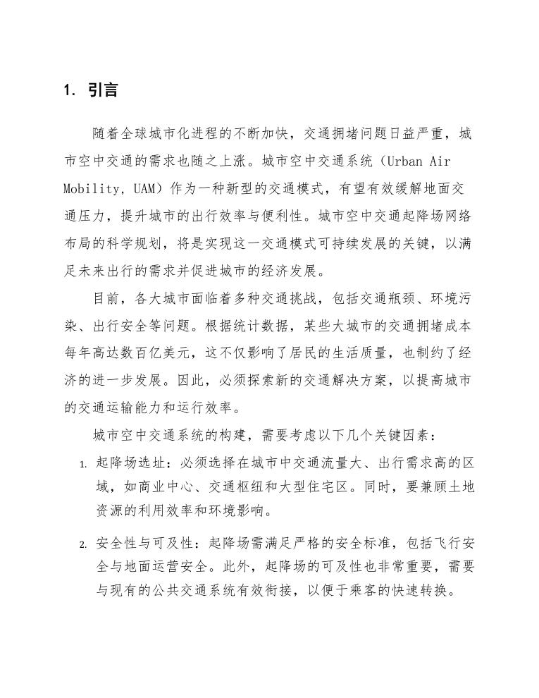 综上所述,城市空中交通起降场的空间布局需要综合考虑多个因素,以确保其合理、有效且可持续。合理的布局将为城市的空中出行提供更高效、更便捷的解决方案,满足人民日益增长的出行需求,同时促进城市的经济发展和环境保护。