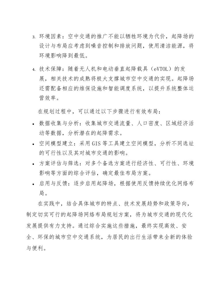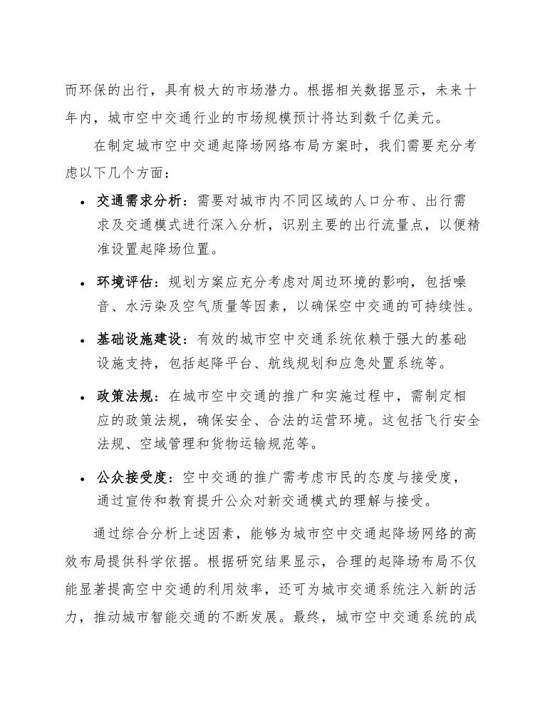 整体而言,城市空中交通起降场网络布局的规划方案将通过分阶段的研究与深入分析,结合实际数据与市场需求,制定出具有可行性的实施步骤,以实现城市空中交通的有效发展与推广。