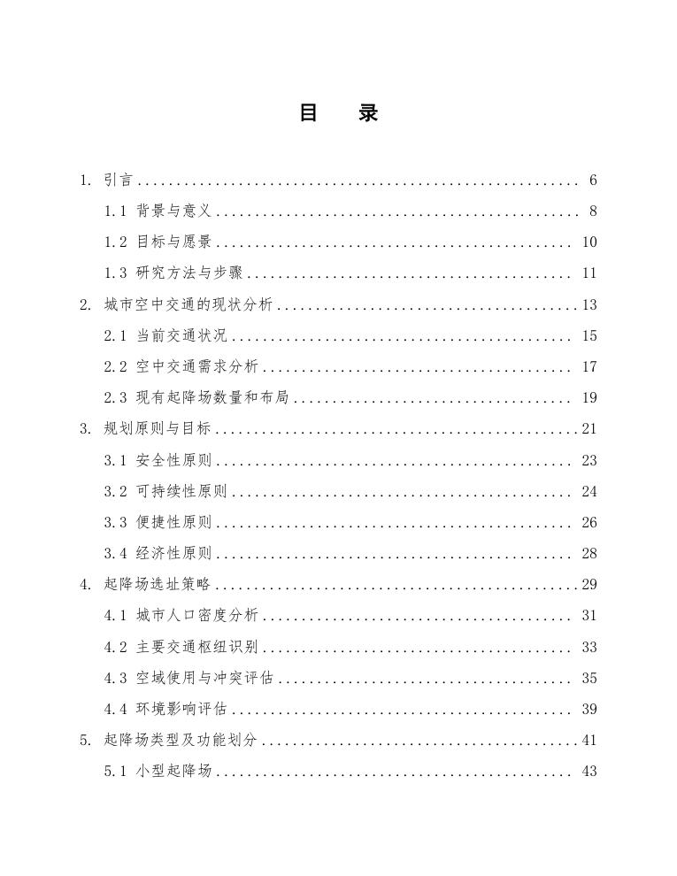 - 可持续性和技术运用:在规划设计过程中,可以引入垂直起降飞行器(eVTOL)等新型航空器的技术特点,合理设计起降场的基础设施和服务配套。此外,运用智能化管理系统对起降场进行动态监控,提高运营安全性和效率。