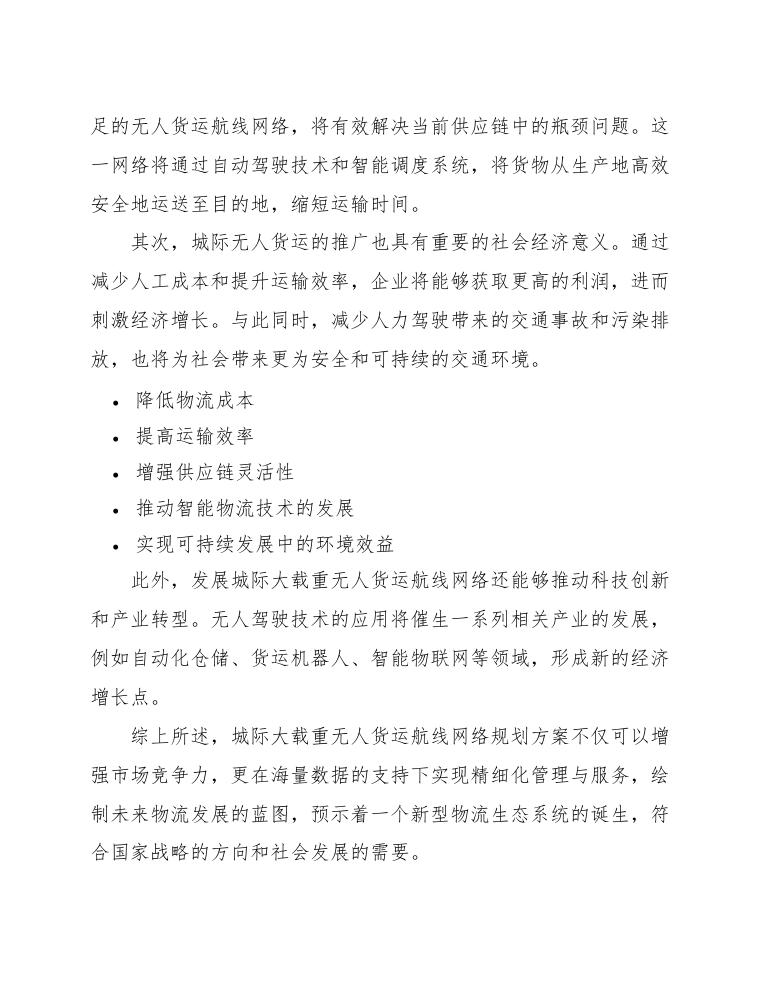 此外,发展城际大载重无人货运航线网络还能够推动科技创新和产业转型。无人驾驶技术的应用将催生一系列相关产业的发展,例如自动化仓储、货运机器人、智能物联网等领域,形成新的经济增长点。