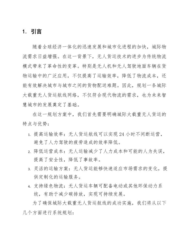 在这一规划方案中,我们首先需要明确城际大载重无人货运的特点与优势: