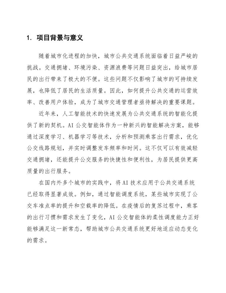 综上所述,在当前全球经济与社会环境的背景下,智能公交系统的建设不仅富有必要性,而且迫在眉睫。通过AI公交智能体的设计与实施,将为未来城市公交的发展提供强大动力,有助于实现更加高效、环保和智能的公共交通网络。