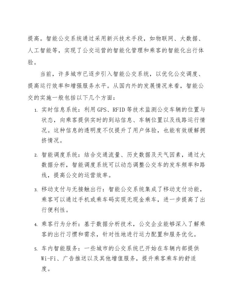 公交智能化发展现状在近年来得到了迅速推进,这是由于城市化进程的加快、人口密度增加以及人们对公共交通服务质量要求的提高。智能公交系统通过采用新兴技术手段,如物联网、大数据、人工智能等,实现了公交运营的智能化管理和乘客的智能化出行体验。