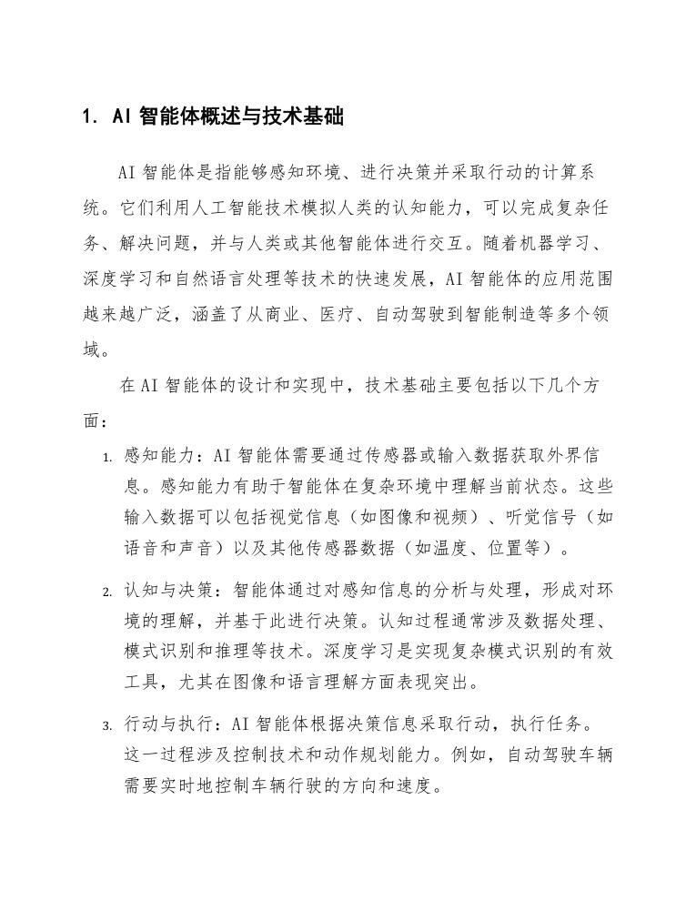 AI智能体是指能够感知环境、进行决策并采取行动的计算系统。它们利用人工智能技术模拟人类的认知能力,可以完成复杂任务、解决问题,并与人类或其他智能体进行交互。随着机器学习、深度学习和自然语言处理等技术的快速发展,AI智能体的应用范围越来越广泛,涵盖了从商业、医疗、自动驾驶到智能制造等多个领域。
