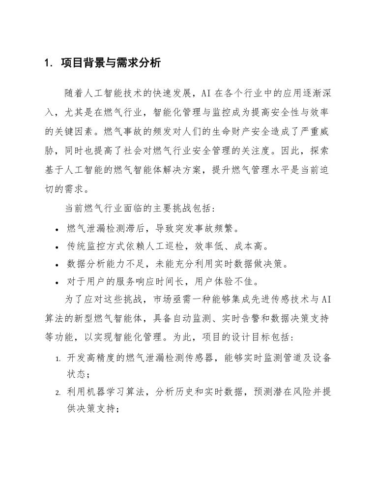 为了应对这些挑战,市场亟需一种能够集成先进传感技术与AI算法的新型燃气智能体,具备自动监测、实时告警和数据决策支持等功能,以实现智能化管理。为此,项目的设计目标包括: