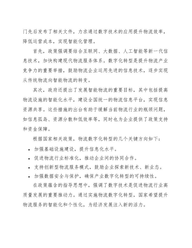 在政策蕴含的指导思想中,强调了数字技术是促进物流行业高质量发展的重要推动力。通过实施物流数字化转型,国家希望提升物流服务的智能化和个性化,为经济发展注入新的活力。