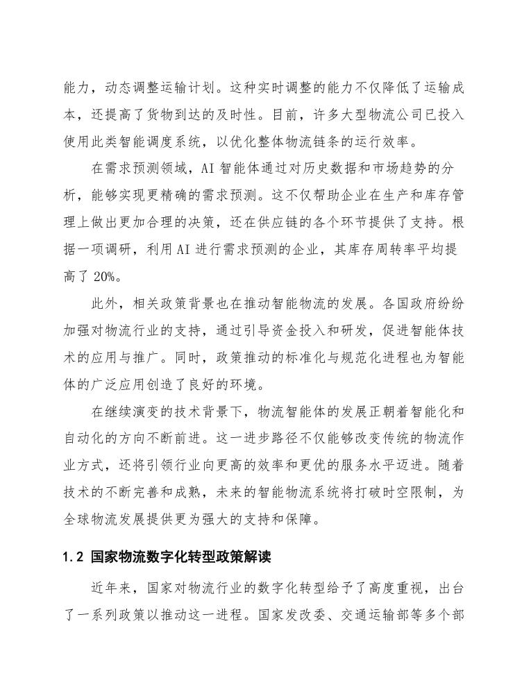 此外,相关政策背景也在推动智能物流的发展。各国政府纷纷加强对物流行业的支持,通过引导资金投入和研发,促进智能体技术的应用与推广。同时,政策推动的标准化与规范化进程也为智能体的广泛应用创造了良好的环境。