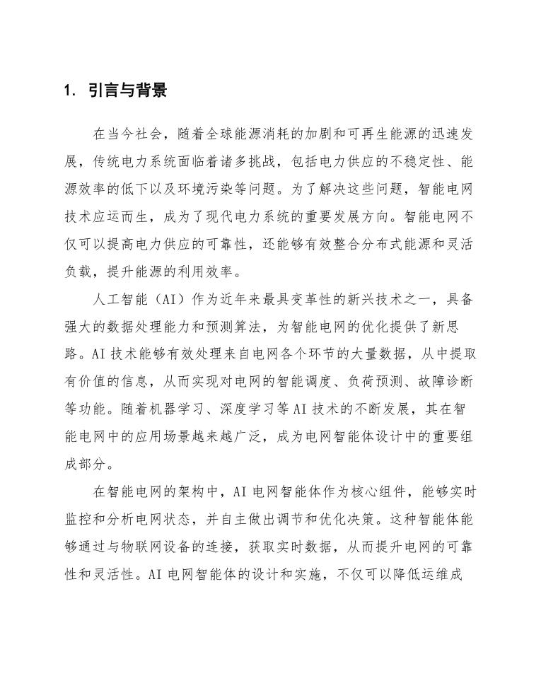综上所述,国家政策的导向与行业的迫切需求为AI电网智能体的设计与应用提供了坚实的基础。在这一背景下,各类企业与研究机构应加强合作,推动技术创新,推动智能电网的全面落地,助力电力行业的可持续发展。