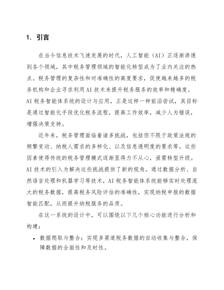 综上所述,AI税务智能体系统不仅可以帮助税务机构提高工作效率,还能为企业提供更为精准的税务服务支持,助力构建更加智能化的税务管理生态。接下来的章节将深入探讨该系统的系统架构设计、具体应用场景以及实施方案,期望为相关人员提供一个详尽、可行的智能化税务解决方案。