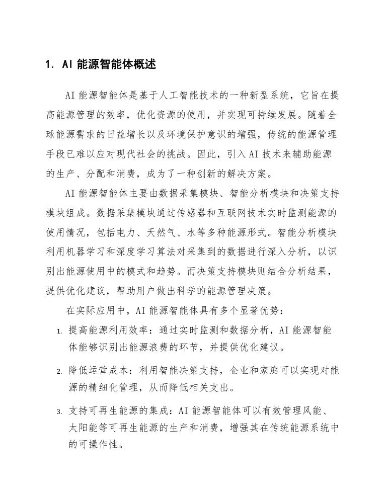 增强用户参与度:AI能源智能体能够为用户提供个性化的能源管理方案,提升用户在能源使用中的参与感和满意度。