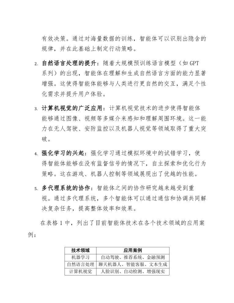 在表格1中,列出了目前智能体技术在各个技术领域的应用案例: