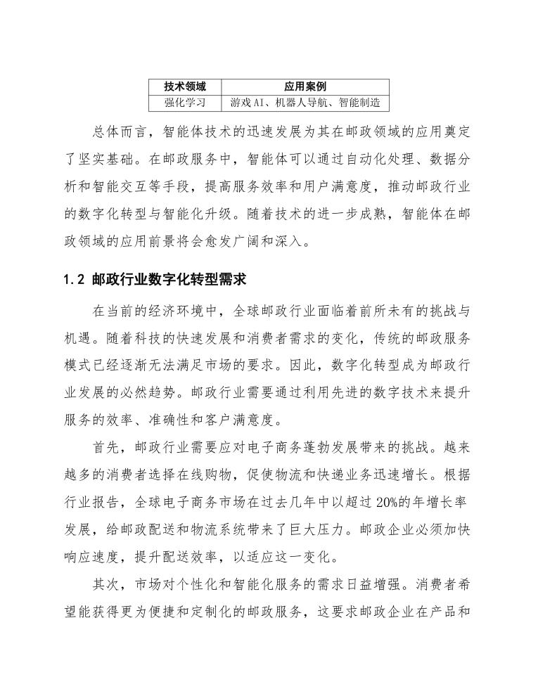 总体而言,智能体技术的迅速发展为其在邮政领域的应用奠定了坚实基础。在邮政服务中,智能体可以通过自动化处理、数据分析和智能交互等手段,提高服务效率和用户满意度,推动邮政行业的数字化转型与智能化升级。随着技术的进一步成熟,智能体在邮政领域的应用前景将会愈发广阔和深入。