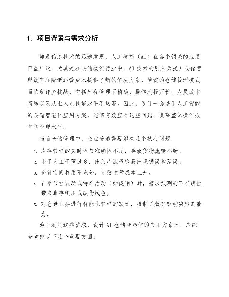 通过这一系列需求的分析,我们能够更清晰地定位AI仓储智能体的设计方向及应用场景,以便在实际实施中达到预期的效果和收益。
