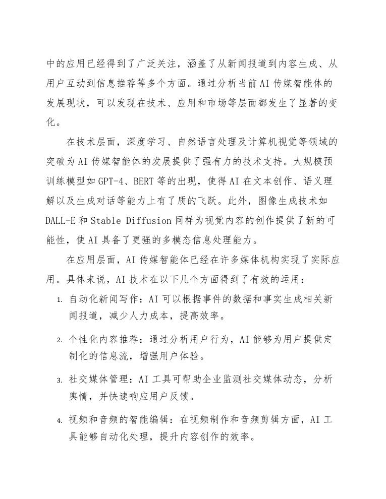 总体来看,AI传媒智能体的发展现状呈现出以下几个趋势: