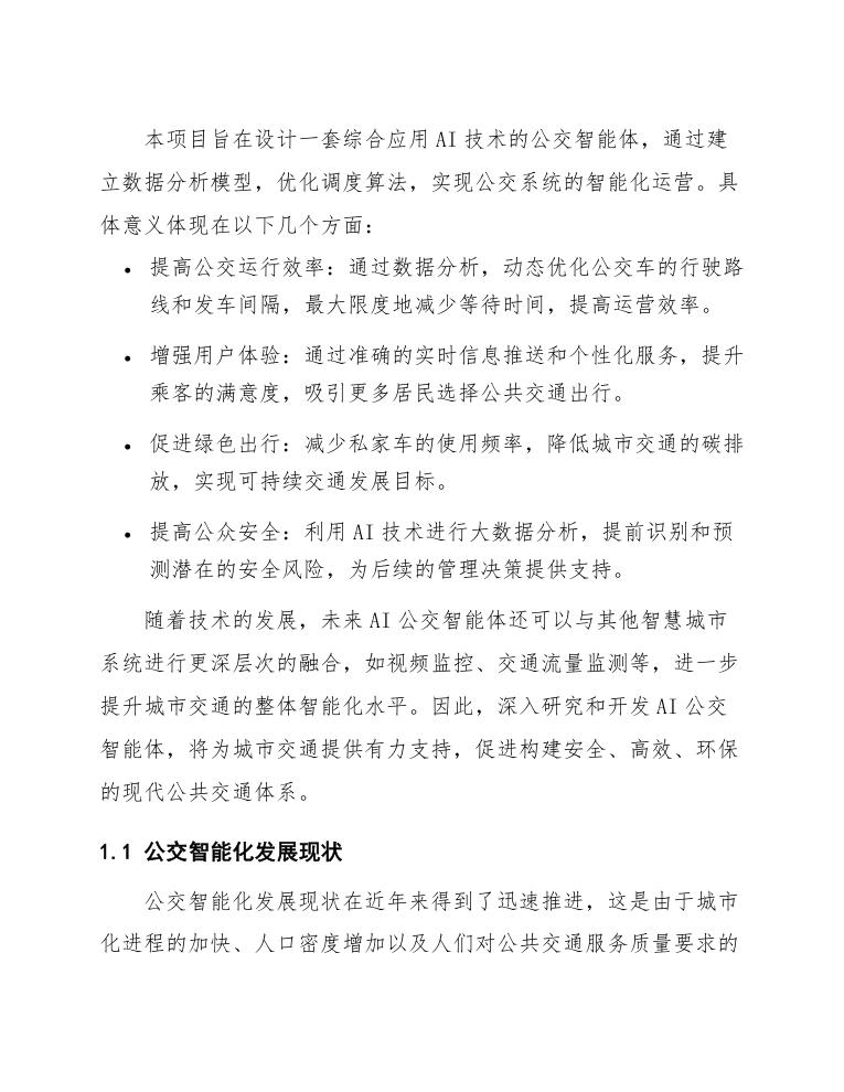综上所述,在当前全球经济与社会环境的背景下,智能公交系统的建设不仅富有必要性,而且迫在眉睫。通过AI公交智能体的设计与实施,将为未来城市公交的发展提供强大动力,有助于实现更加高效、环保和智能的公共交通网络。