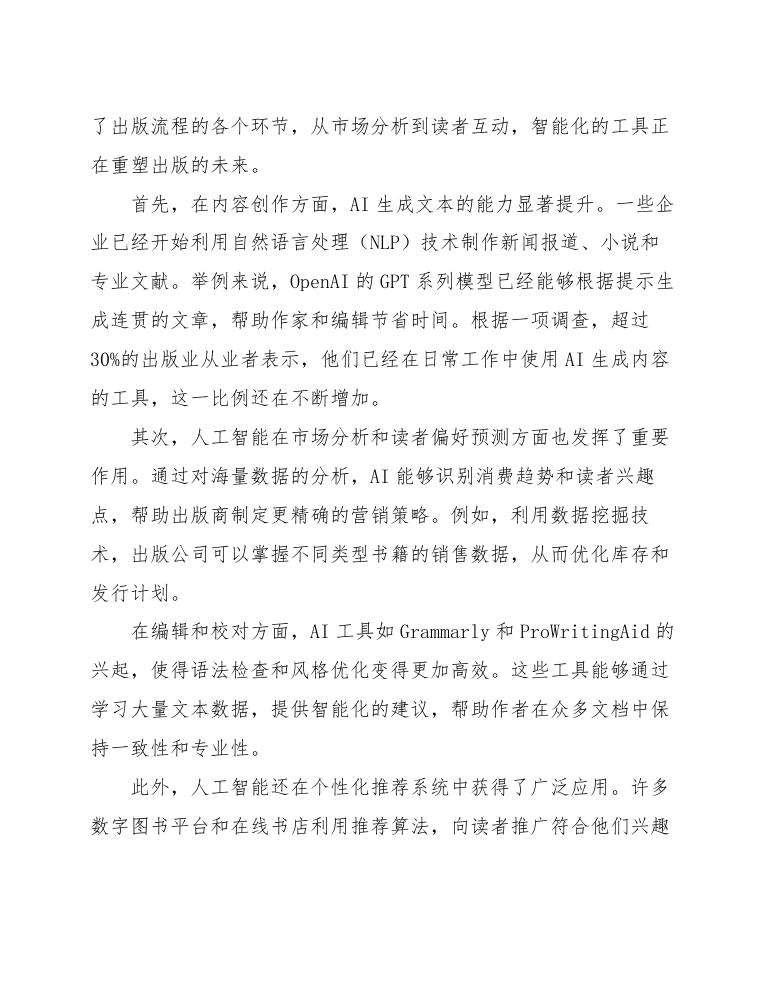 在过去的十年中,人工智能技术在出版行业的发展迅速,为行业带来了深刻的变革。AI的应用不仅限于内容创作和编辑,还涵盖了出版流程的各个环节,从市场分析到读者互动,智能化的工具正在重塑出版的未来。