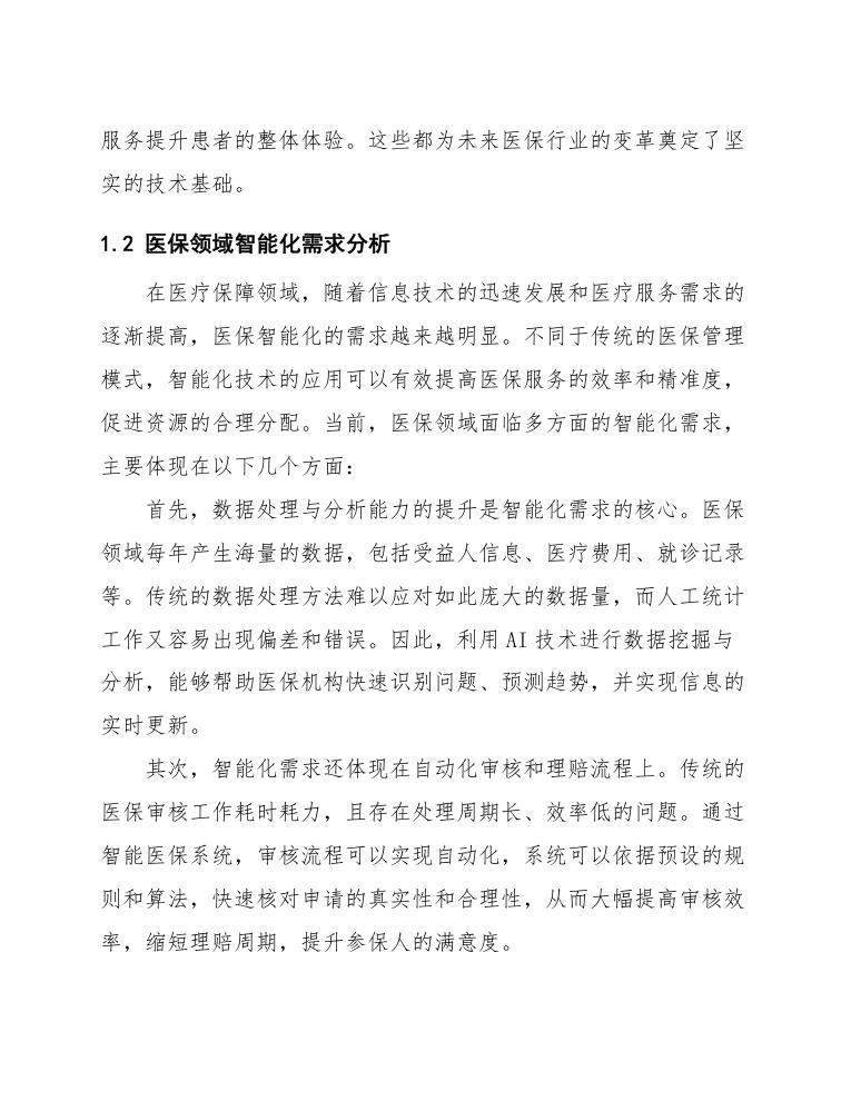 综上所述,医保领域的智能化需求呈现多样化和深层次的发展趋势。通过深入分析这些需求,结合AI技术的成熟应用,可以有效推动医保服务的优化升级,实现医保与科技的深度融合。这不仅能提高医保管理效率,还能提升参保人的就医体验,促进医保服务的可持续发展。
