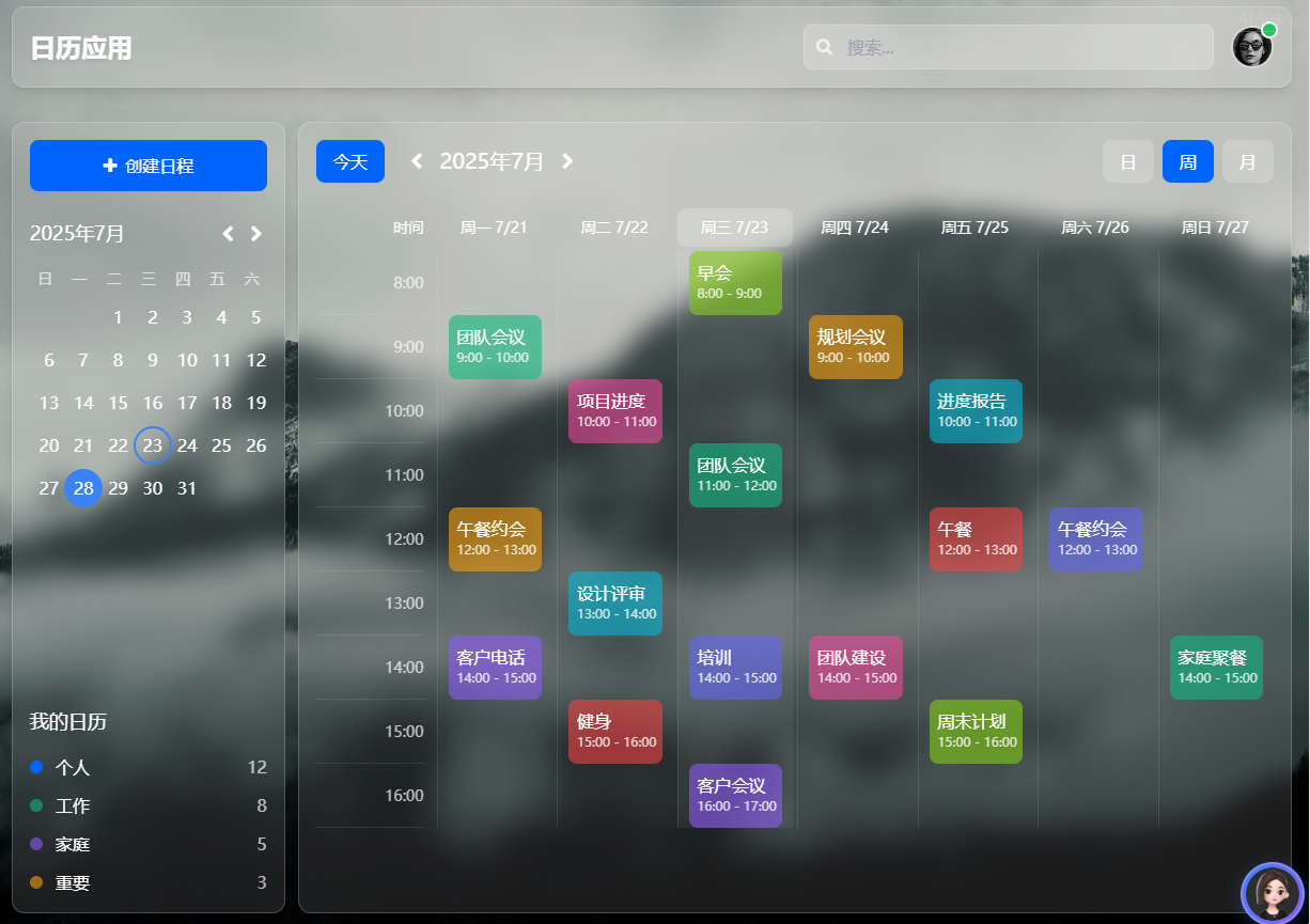 豆包生成的一个好看的日历日程管理界面代码收藏: