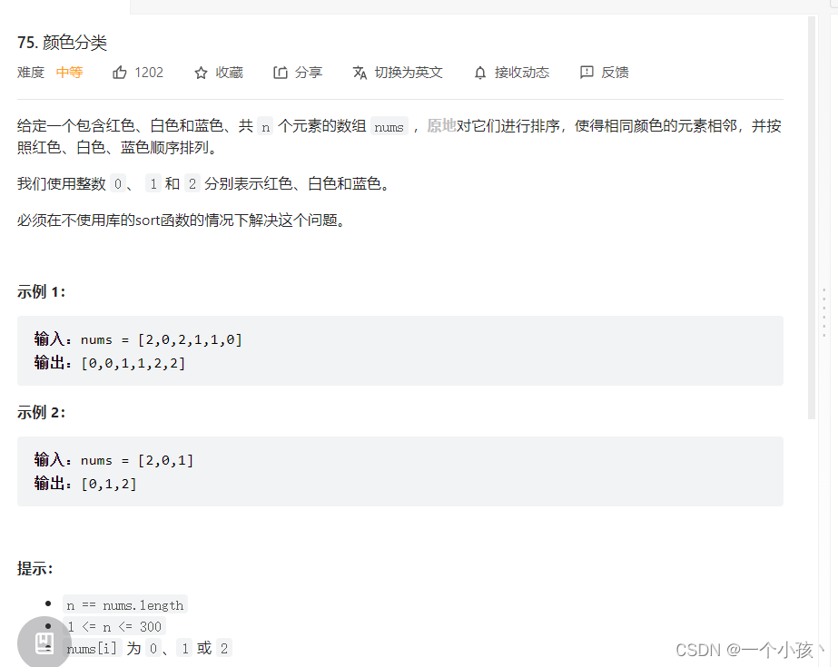 //只碰见1或者0的时候,直接交换,在没2的情况下,01肯定直接交换