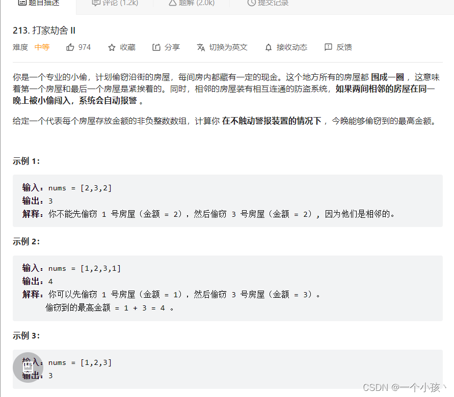 //算法题有两大核心简化复杂问题的思路:减而治之和分而治之,这题把环形分为单排就是分而治之,即把一个问题分成多个规模更小的子问题。