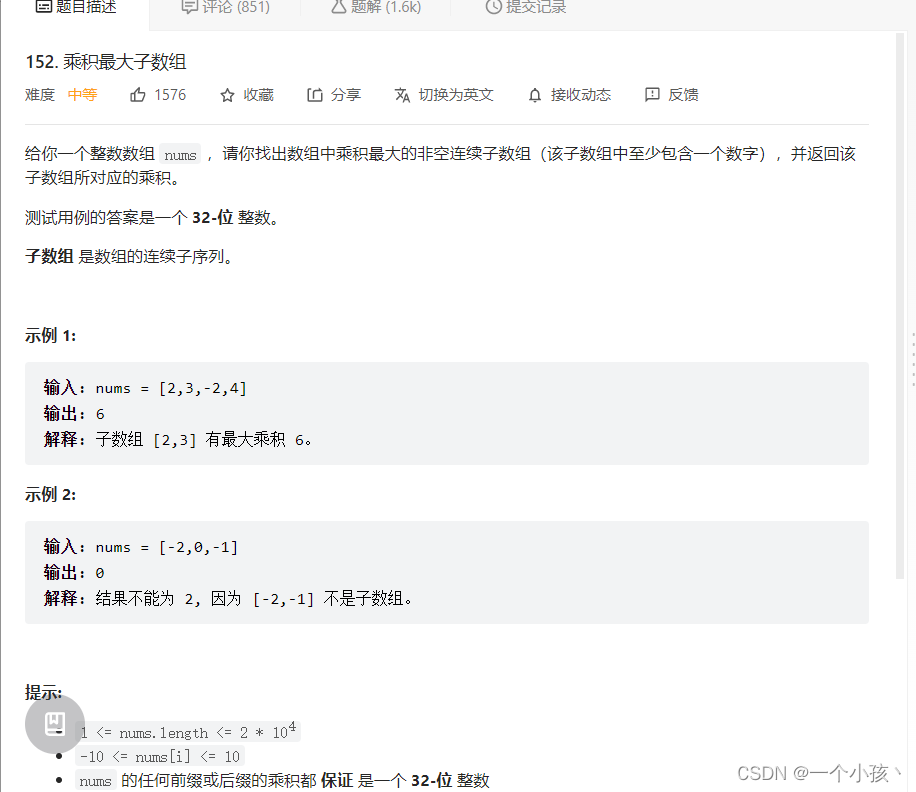 //首先想到的就是滑动窗口的最大子序列合类似,首先想到的是因为正负乘法可能会存在不同