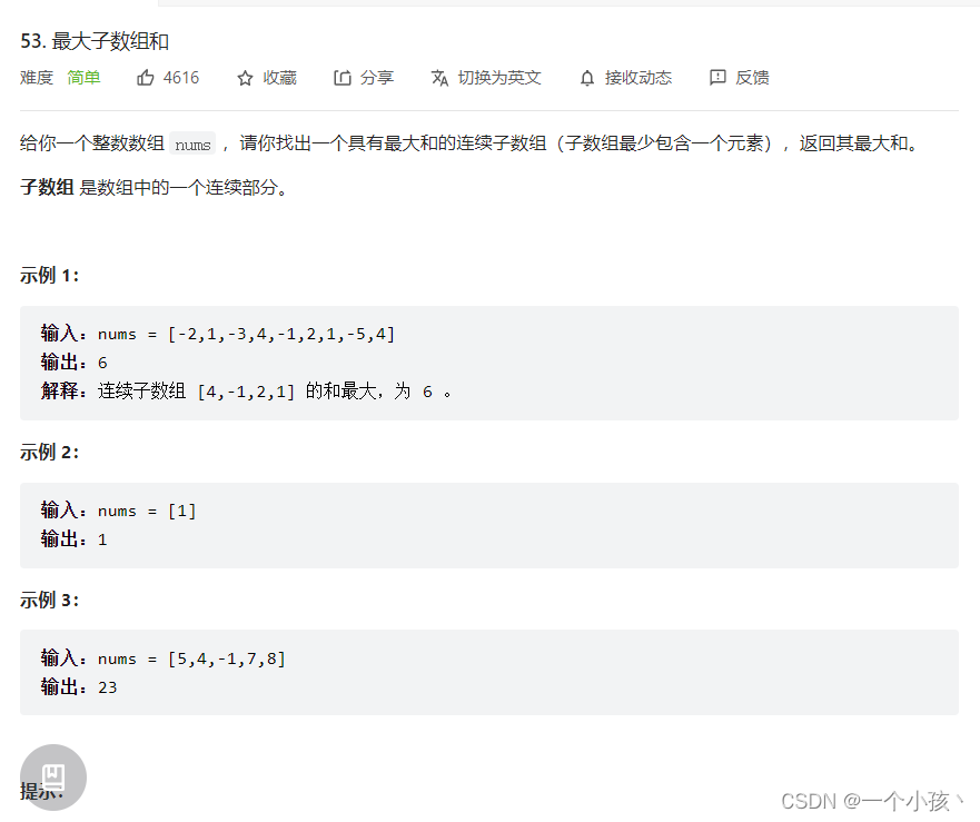 // // dp[i] 表示:以 nums[i] 结尾的连续子数组的最大和