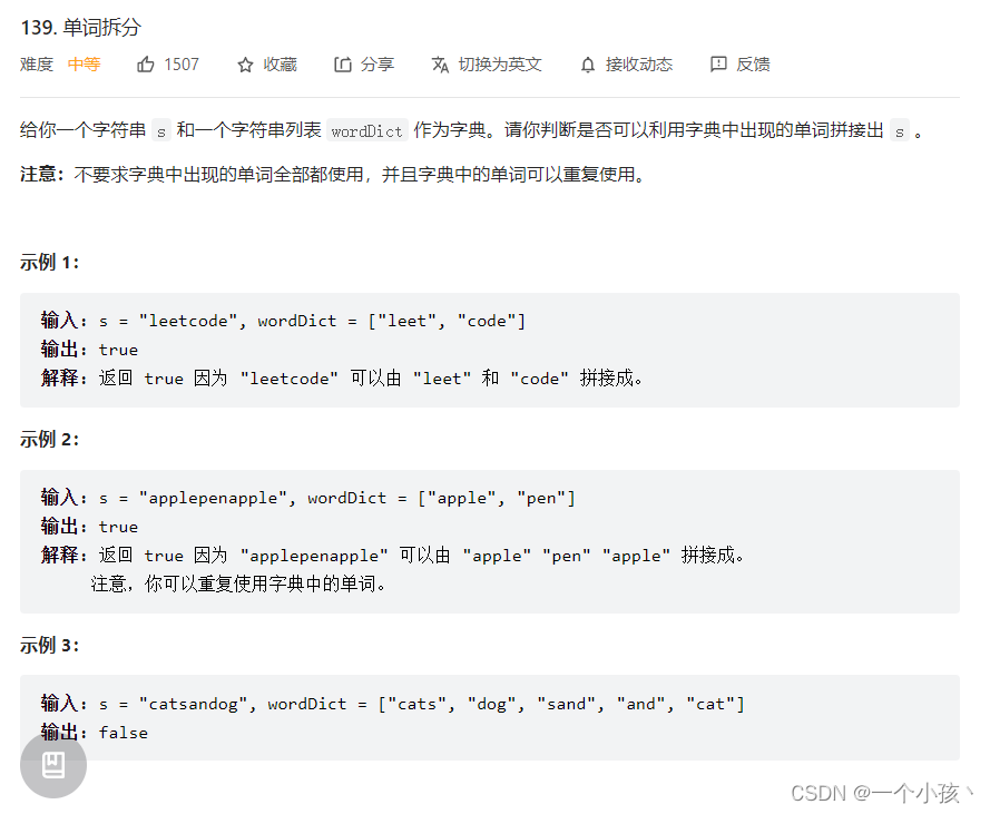 // dp[i] 表示 s 中以 i - 1 结尾的字符串是否可被 wordDict 拆分