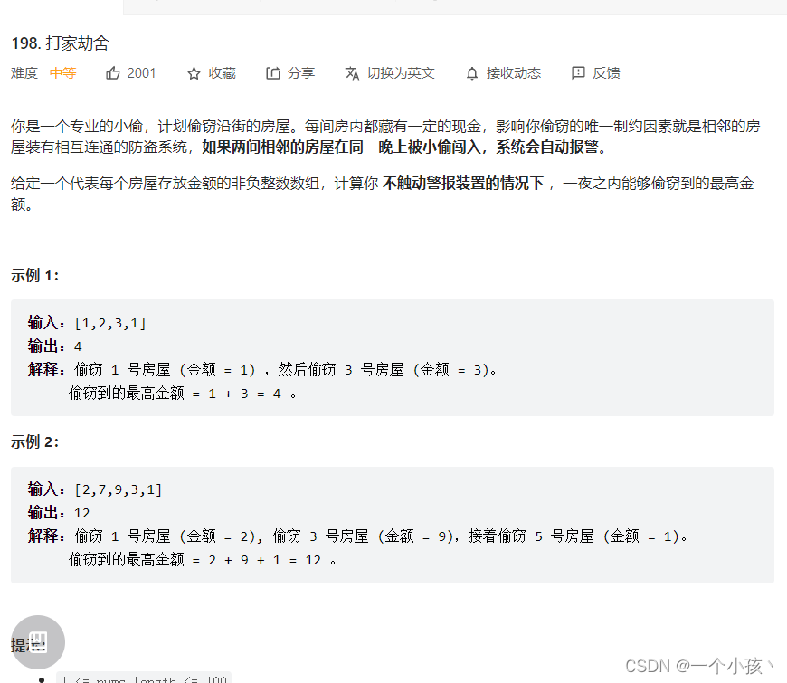 // 我们使用一个大小为 2 的数组来表示 int[] res = new int[2] 0 代表不偷,1 代表偷