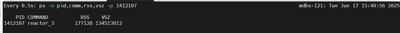 watch -n .5 'ps -o pid,comm,rss,vsz -p 1147625'