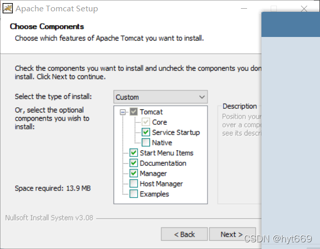 5.选择tomcat下的Service startup选项,以后将可以在管理的服务中启动和关闭Tomcat(也可以默认,不改变配置),点击next